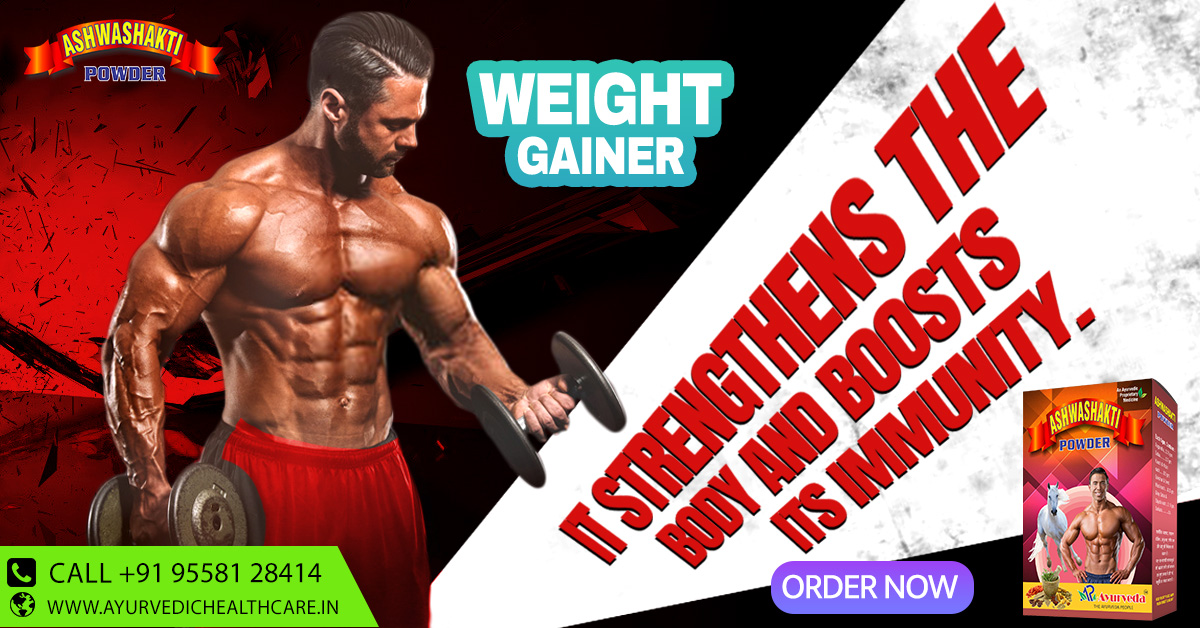 Ashwashakti Powder is the best mass gainer which helps males to gain weight which is manufactured by the Ayurvedic ingredients like:- Ashwagandha, Kaucha, Vidari, Gokshura, Sweet Musli, Satva, Giloy satva, Shatavari, Elaichi, Sarkara.
